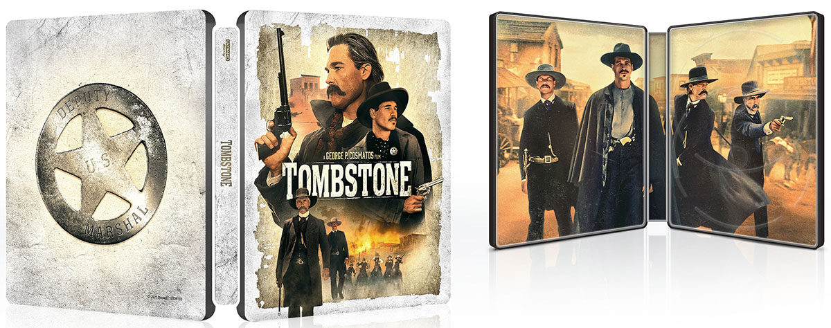 Tombstone: SteelBook Edition (Walt Disney Studios Home Entertainment, rated R, 2:35:1 aspect ratio, 130 minutes, $55.99) — Back in 1993, a group of popular actors got together to portray a bunch of iconic gunslingers in director George P. Cosmatos’ famed Western.